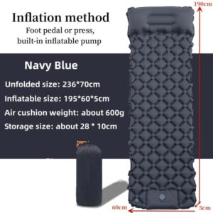 -La almohadilla para dormir se pliega hasta aproximadamente 28*10*10cm y pesa solo unos 600g. Con una bomba de aire y almohada integradas, no es necesario llevar almohada adicional. Una vez desinflada y doblada, la almohadilla de camping cabe fácilmente en su mochila, y es súper liviana y ahorra espacio, dejando mucho espacio para otros equipos.