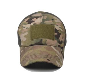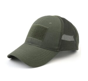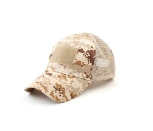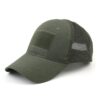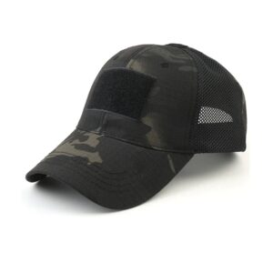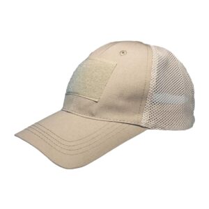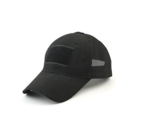 Fácil fijación de parches de gancho y bucle. Diseño único de malla transpirable. Correa ajustable en la parte posterior de tela de parada. Talla única para todos.