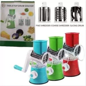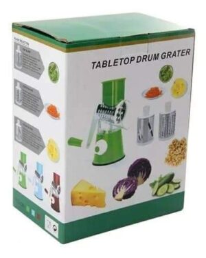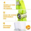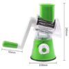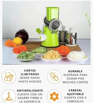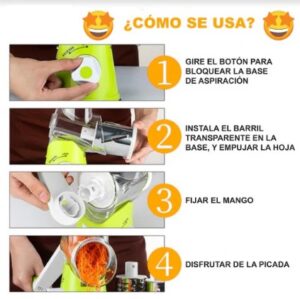 - Incluye: Base de cortador de verduras, tazón de molienda, 3 cuchillos de tambor y mango