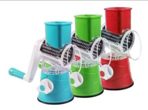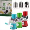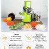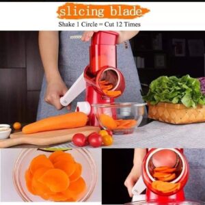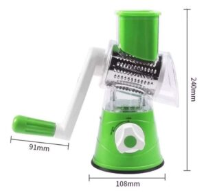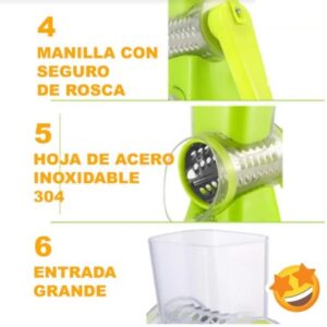 Nuestro Rallador y cortador giratorio ayudará a PICAR RÁPIDAMENTE VEGETALES o frutas para cualquier plato, ahorrando al mismo tiempo no solo tiempo sino también fuerza. En el conjunto, TES TIPOS DIFERENTES DE CUCHILLOS de acero inoxidable van al cortador de vegetales, lo que le permitirá cortar rodajas grandes y picar verduras y frutas al tamaño requerido.