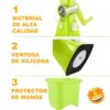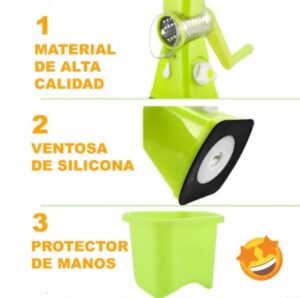 Es por ello que implementamos un práctico mango de plástico y un botón de bloqueo, que será muy útil si hay niños pequeños en la casa. La conveniente base de goma del cortador de verduras no permite que se deslice sobre la mesa durante la operación.