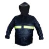 Traje impermeable con uniones termoselladas y cintas reflectantes para una mejor visibilidad en chaqueta.